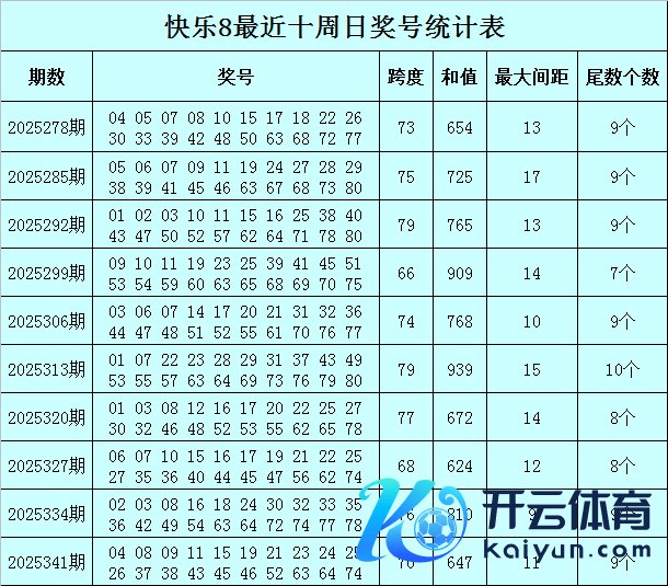 福彩欢然8第2025341期(上周日)追忆:04 08 09 11 15 19 21 23 24 25 26 37 38 43 45 46 52 63 64 74,其中奖号首尾间距为70,和值为647,最大间距为11,余数分歧为:余数0包含0个号码,余数2、7包含1个号码,余数1、6、8、9包含2个号码,余数3、5包含3个号码,余数4包含4个号码。
