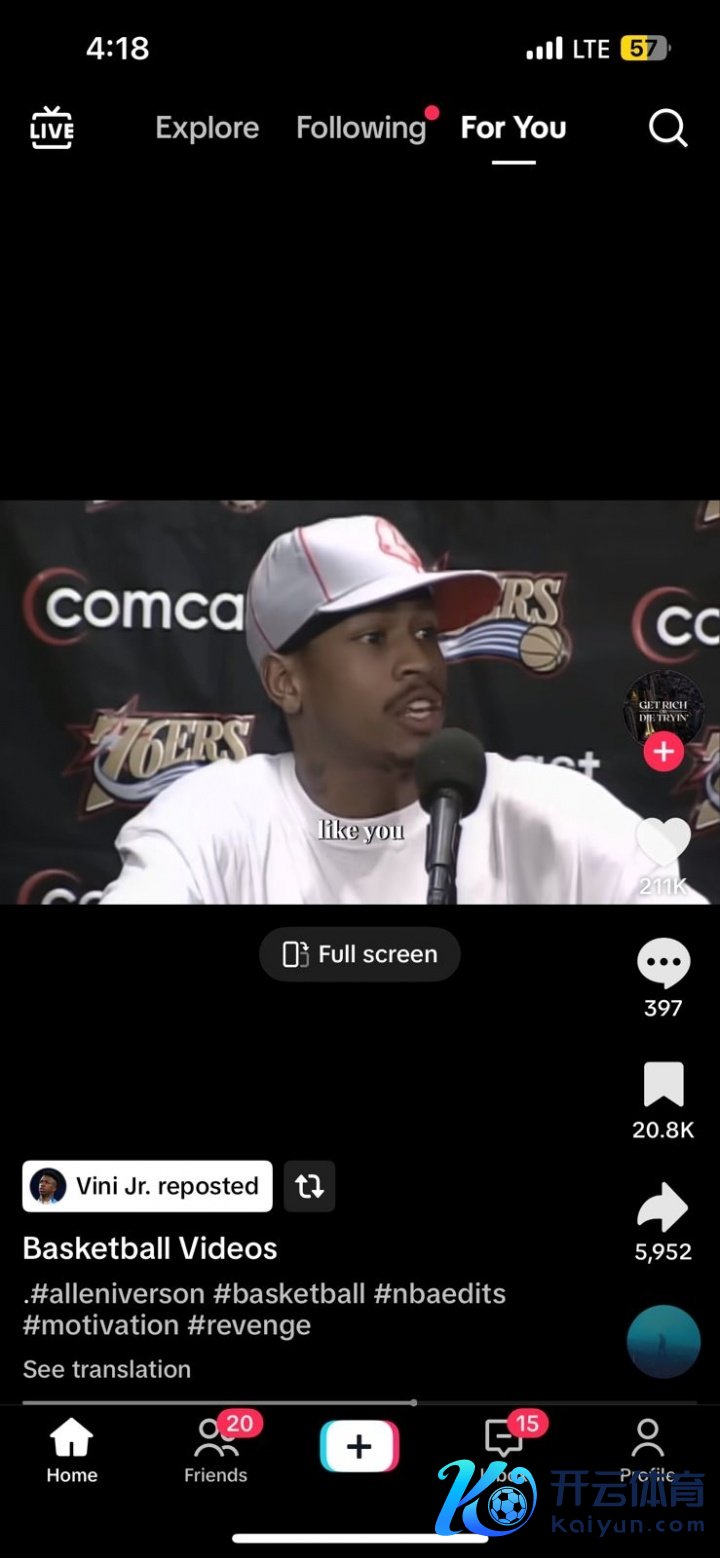 01月29日讯 维尼修斯转发了TikTok平台上一段 NBA名宿阿伦・艾弗森的采访视频。