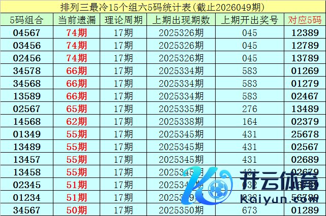 2、摆设三5码组六统计:完了第2026049期,摆设三已开出了7524期奖号了,其中组六号码出现了5359次,组三出现了2088次,豹子出现了77次。