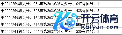 与前期历史同时奖号对比分析,在最近五年开奖中,第269期同时奖号与第306期同时奖号齐出现了疏通号码: