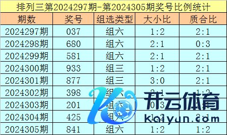 上期回来:成列三第2024305奖号开出841,奖号质合比为1:2亚洲足球买球站体育信息,大小比为1:2,跨度为7,类型为组六。